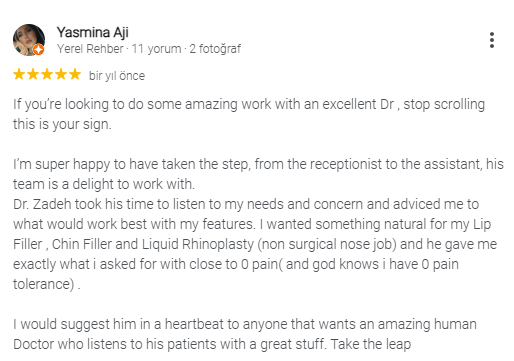Dr. Zadeh is attentive to the needs of each patient. He performs a thorough examination in order to apply his expertise regarding the best treatments and procedures to achieve the desired result.